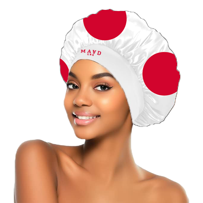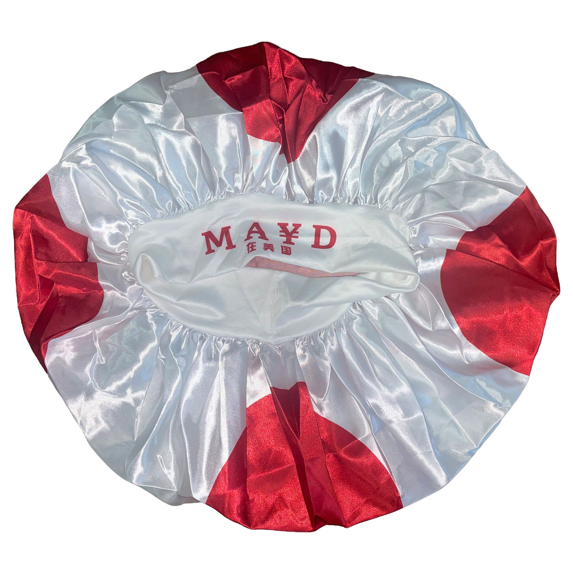 The MAYD in America Satin Braid Bonnet is crafted from premium fabric and designed to protect your crown while repping bold style and independent hustle. Featuring our signature ¥ logo and “在美国” (“In America”), this bonnet blends culture, comfort, and creativity in every stitch.