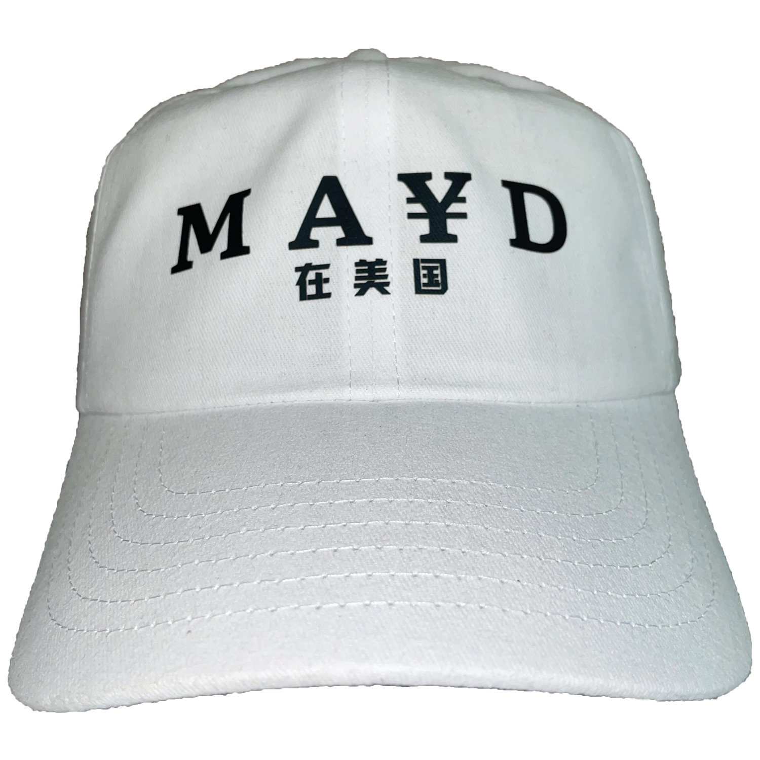 Description: Classic style with meaning pressed in. This MAYD in America Dad Hat features our signature ¥ logo and “在美国” (In America) — a clean, iconic design that reps Black-owned fashion, creative hustle, and American-made dreams.